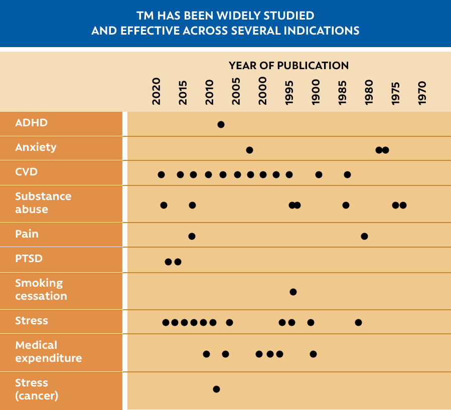 - Highlights of the published research on the benefits of TM for improving mental and physical health, creativity and cognitive function, productivity and performance